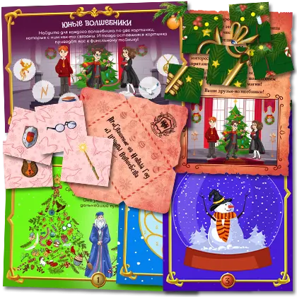 - Задания рассчитаны на детей и не отличаются высокой сложностью, однако предполагают знакомство с первым романом о Гарри Поттере. Юные фанаты получат огромное удовольствие, воображая себя волшебниками: в компании друзей им предстоит преодолеть испытания в сказочном мире и обнаружить заветные новогодние подарки.