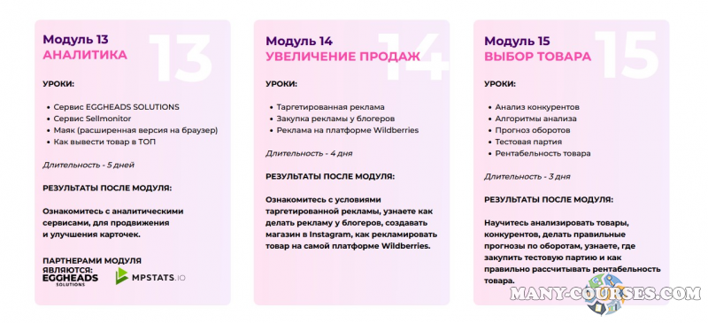 Автор курса: Лиза Никонорова, Олеся Борисова Категория: Бизнес, менеджмент, продажи / Wildberries Дата выхода: 2022 Продажник от автора: Перейти Цена у автора: 1000 P