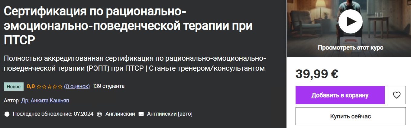 - Идеально подходит для новичков без опыта работы в психологии или терапии, желающих узнать больше о РЭПТ при ПТСР.