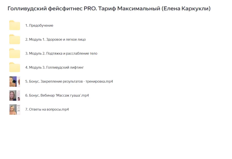 Василиса Егорова - Магия молодости Pro. Тариф Мне всё самое лучшееЕкатерина Федорова - Эстетика лица, шеи, зоны декольте. Уровень 1Королева красоты. Экспресс / Елена Каркукли - преображение 3 в 1Ревитоника / Анастасия Дубинская - Молодость. Перезагрузка. 30 сезон. Тариф СтандартныйВиктория Романова - Клуб Pro красивое лицо. 18 ноября по 21 декабря