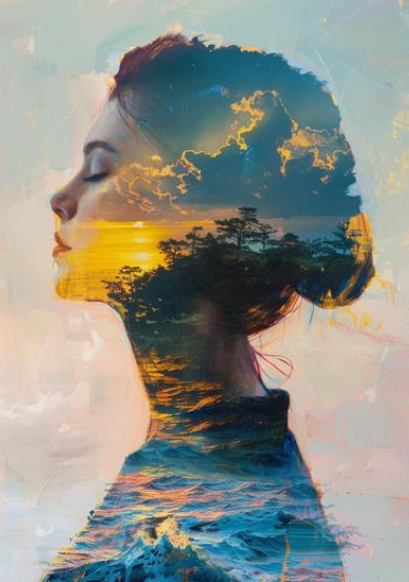 Эффект двойной экспозиции в живописи: объединение портрета и пейзажа. Мы создадим морской закат внутри женского силуэта, тем самым показывая внутреннее состояние