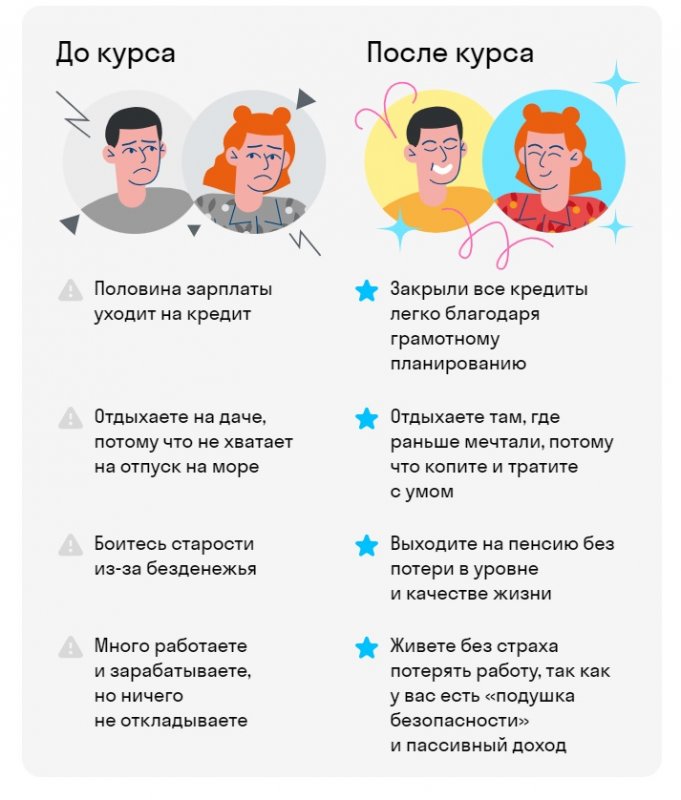 - Деньги в порядке сразу. Грамотно тратите, копите и инвестируете после урока — с простыми практическими заданиями.