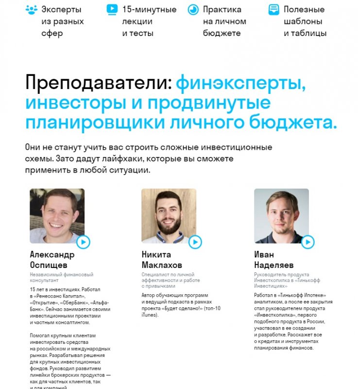 Преподаватели: финэксперты, инвесторы и продвинутые планировщики личного бюджета.