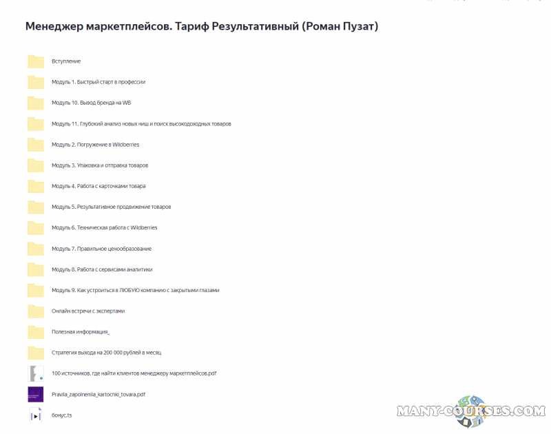 Пётр Александров / WPnew - Продвижение сайтов в яндексе и google от А до ЯДмитрий Шалаев - Онлайн-курс 200 тыс. рублей за 10 недель на продаже товаров на Wildberries Пакет VIPSenler / Зоя Буркова - Сертификация Senler 2022. Тариф ПроЮрий Санько - Target Camp. Тариф Я в командеАлина Рязанова - Менеджер маркетплейса. Тариф Старт (2021)