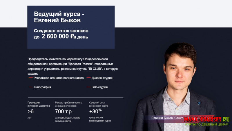 Евгений Быков - Создай продающий сайт за 7 видеоуроков (2021)Дмитрий Зверев - Конструктор офферов. Тариф: Конструктор офферов (2021)Стас Быков - Онлайн-Видеокурс «Создание сайта с нуля 2021» (2021)Сергей Самоволников - Курс по созданию сайтов на Тильде (2021)Андрей Мягков - Лучший курс по Арбитражу Трафика и Партнерскому Маркетингу 2021. Google Ads (2021)