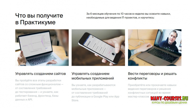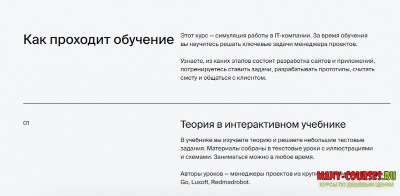 Вы погрузитесь в работу IT-компании. В роли менеджера проекта вы создадите первую работоспособную версию сайта с виртуальной командой из трёх человек.