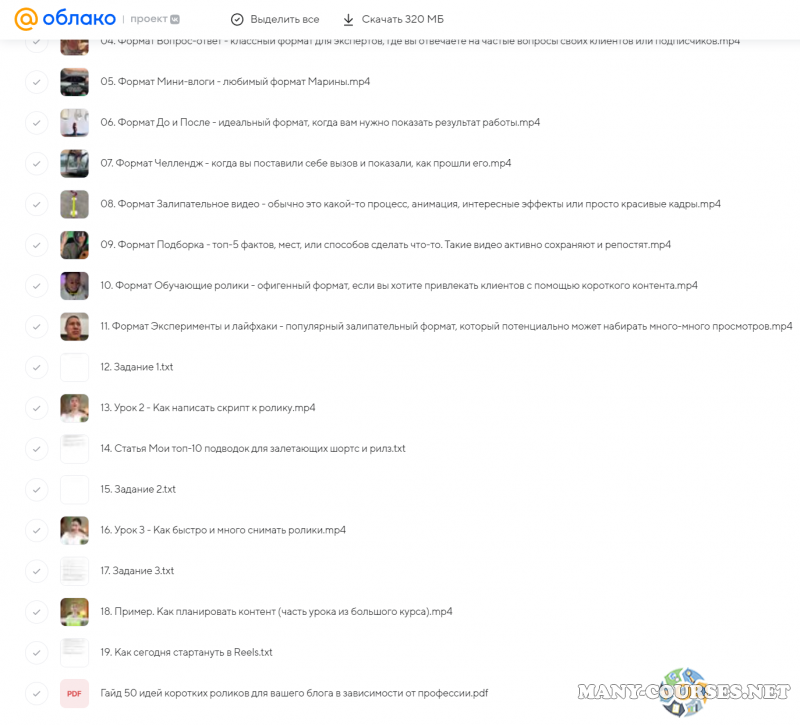 Игорь Зуевич - Создай свой генератор идей для Reels (продающий контент-план на 1 год) (2023)Infinity Learning / Александр Колосов, Алексей Котелков - Chatgpt для жизни и бизнеса. Тариф ProМихаил Христосенко, Артем Сенаторов - Практический онлайн-курс TikTok РакетаМарина Могилко - Мастер YouTubeSMM-Академия Михаила Христосенко / Анна Демидова - Игра на Миллион
