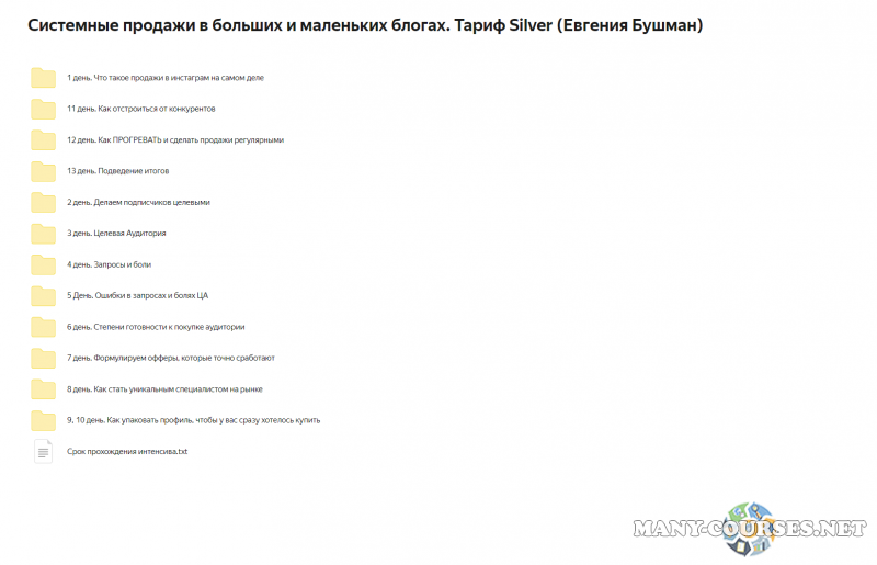 Мария Афонина - Курс по запускам и продюсированию. 3 поток. Тариф ПродажиАлександр Шевелев - Эксперт рынка 2.0 (2022)МИФ Курсы - Управление в эпоху перемен. Тариф СолоВлад Плужниченко, Кир Уланов - Эффективный таргетинг. Пушистый снайпер. Пакет «Стандарт»lion_trade_team - Скальпинг на американском фьючерсе (2021 тариф Трамп)