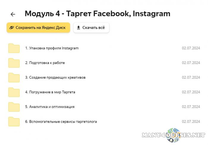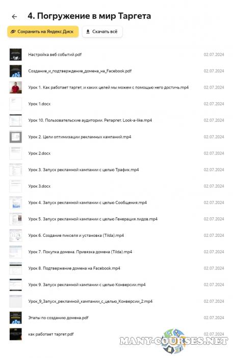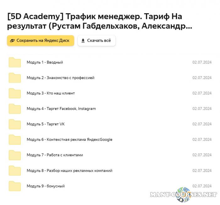 5D Academy / Рустам Габдельхаков - Сам себе таргетолог-с нуля до первого клиента. Тариф На результат (2021)Юрий Санько - Target Camp. Тариф Я в командеПолина Бондарева - Контекстная реклама в Яндекс с нуля. Тариф Самостоятельный (2023)ConvertMonster - Специалист по трафику. Трафик-менеджер 2.0 (2020)Пётр Александров / WPnew - Продвижение сайтов в яндексе и google от А до Я