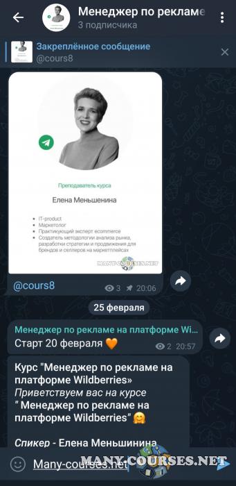 Елена Меньшенина - Менеджер по рекламе на платформе Wildberries старт 20 февраля 2025г