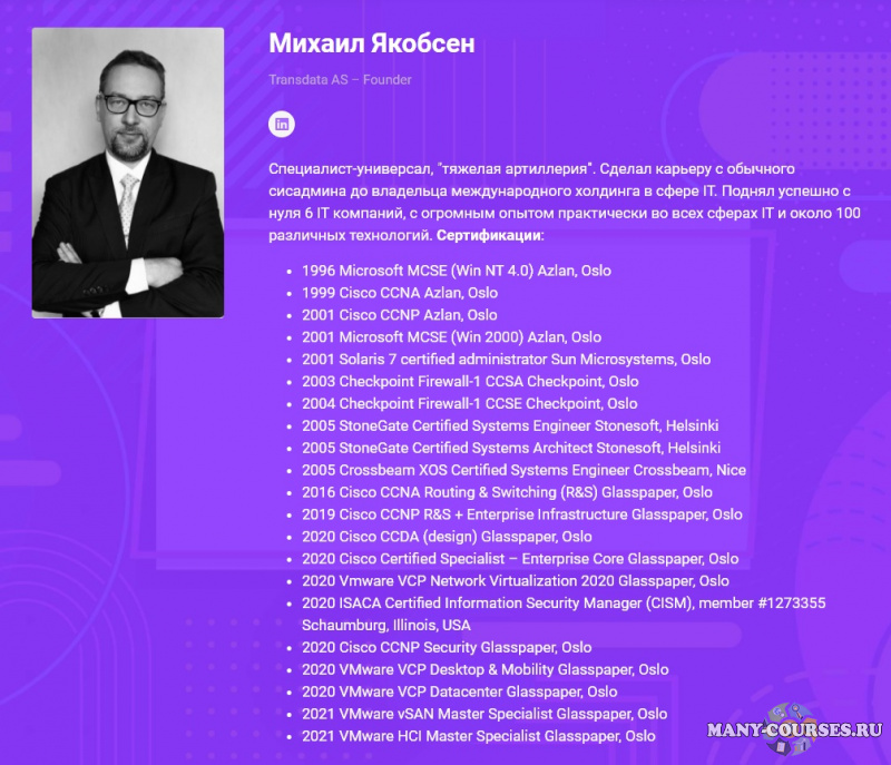 Автор курса: Михаил Якобсен Категория: Программирование Дата выхода: 2021 Продажник от автора: Перейти Цена у автора: 4999 P