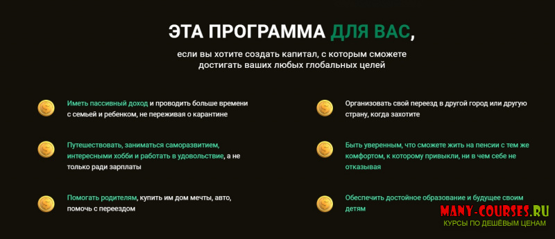 - Научитесь составлять план достижения любого желания, которое упирается в деньги: формирование капитала для пассивного дохода, недвижимость, пенсионные накопления