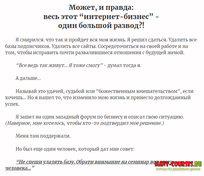 Глупо делать на ней целый продукт. (Хотя я знаю пару гуру, которые бы так и сделали…) Поэтому я просто напишу об этом в выпуске рассылки, которую ты получишь как участник The Club.