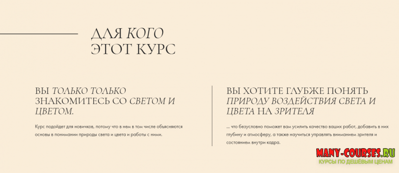 Этот курс создан для того, чтобы дать основы в понимании работы со светом и цветом, но при этом наделить вас свободой экспериментировать и не упираться в какие-то "правила" или "законы". Мы постараемся максимально широко рассмотреть все возможности этих двух инструментов и их влияние в том или ином контексте на зрителя, чтобы вы смогли начать пользоваться этим в своих работах.
