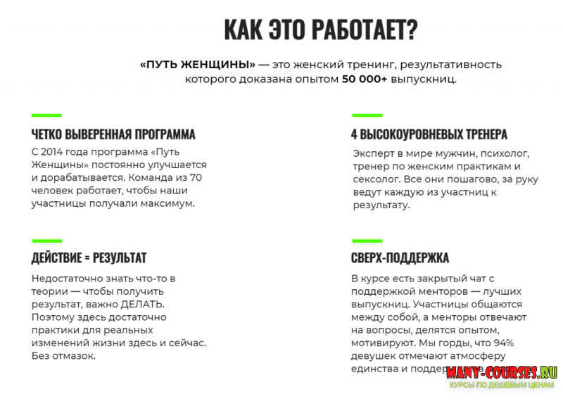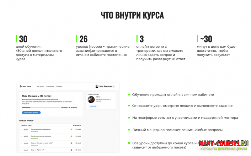 - Закрытый чат участниц с поддержкой ментора (успешной выпускницы)