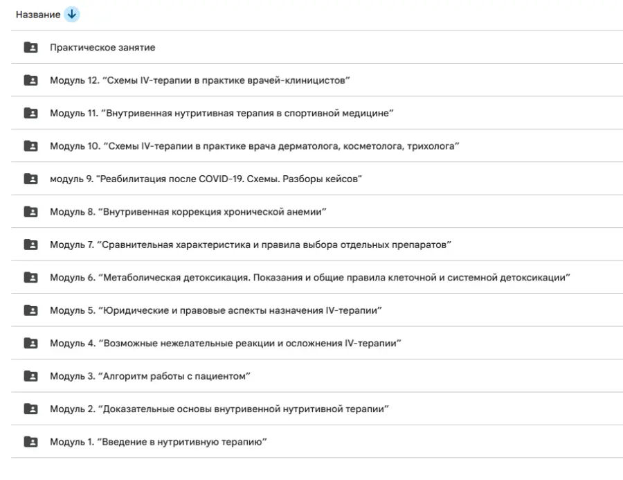 В программе 72-часового курса резюмирован 13-летний опыт практикующего эксперта, научного консультанта сети клиник IV-терапии Александры Медзиновской: