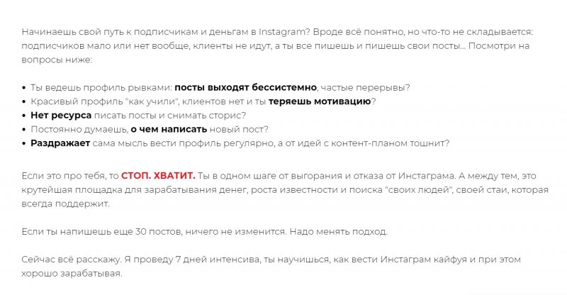 Сейчас всё расскажу. Я проведу 7 дней интенсива, ты научишься, как вести Инстаграм кайфуя и при этом хорошо зарабатывая.