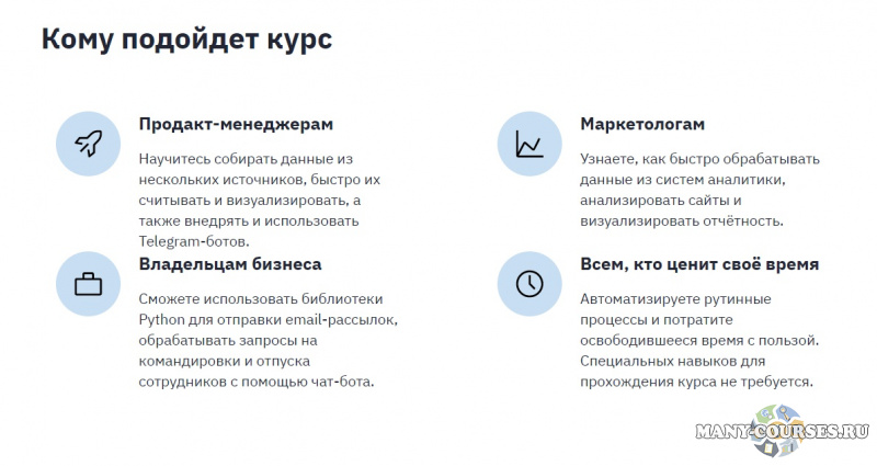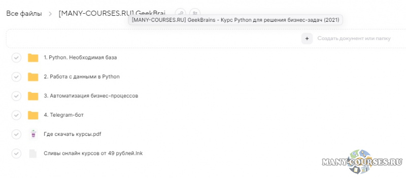 Gramik Startgram / Stepik - Онлайн-школа в Telegram: создание, запуск, маркетинг и продажи (2021)Михаил Русаков - Написание лайфхаков на PythonDevman - Знакомство с PythonМаксим Басманов - Лаборатория Photoshop с нуля до профиОльга Скороходова / izibizi - Как с 0 научиться создавать свои чат-боты за 7 дней (2021)