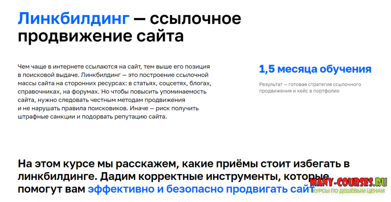 Вы находитесь на странице товара «Нетология - Линкбилдинг: как продвигать сайт внешними ссылками (2021)», это материал 2021 года, который, мы надеемся, принесет вам пользу. Все курсы доступны по очень низкой цене, в отличии от оригинальной цены автора в размере 20390 рублей. Вы же получаете этот курс, купив в нашем магазине Coursx.net, с огромной скидкой, всего 249 рублей. На каждый курс Вы можете посмотреть оригинальный продажник, после чего принять решение о покупке. Обучающий курс входит в рубрику «SEO и SMM», спросом которой пользуется множество покупателей. В нашем магазине Вы найдёте ещё много курсов от автора «Нетология», достаточно ввести в поиск имя автора.