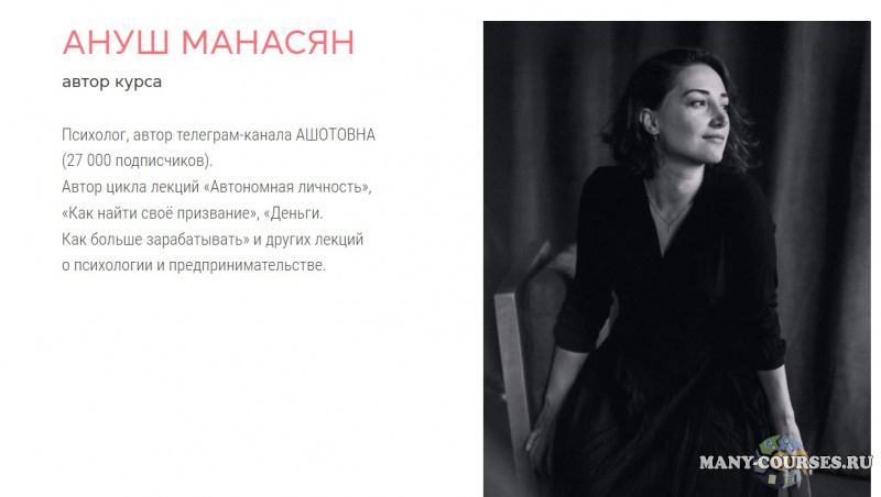 Автор курса: Ануш Манасян Категория: SEO и SMM / Telegram / YouTube Дата выхода: 2021 Продажник от автора: Перейти Цена у автора: 16900 P