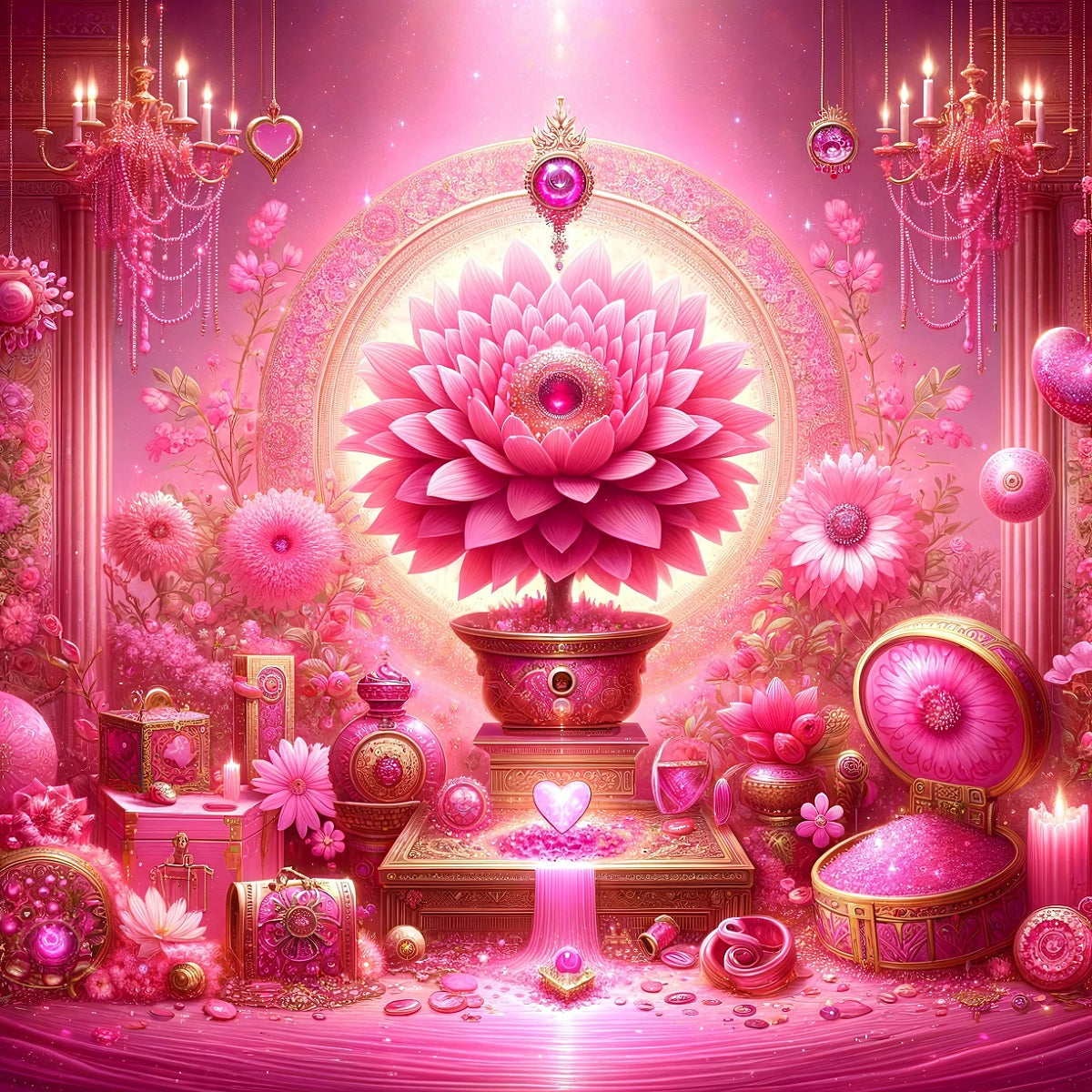 Войдите в волшебный мир Pink Abundance, где такие элементы, как Pink Chandelier и Pink Treasure Box, объединяются, чтобы поднять ваше настроение и улучшить вашу жизнь.