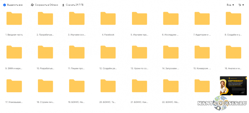 Вес курса на облаке - 29.7 ГБ