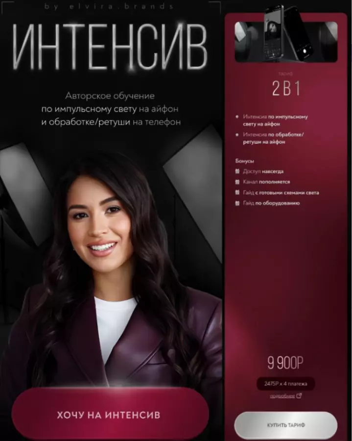 по импульсному свету и обработке/ретуши на телефон. Тариф 2в1